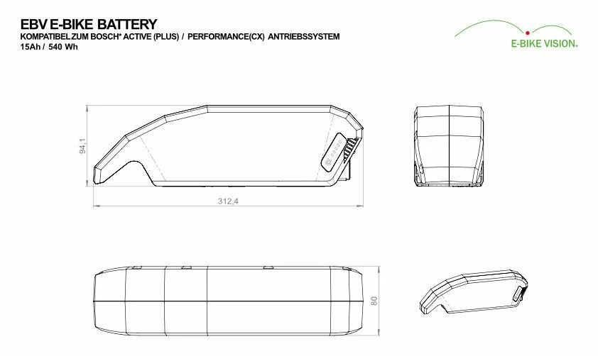 E-Bike Vision – EBV Batterie De Cadre Compatible Bosch Active (Plus) / Performance (CX) 36 V