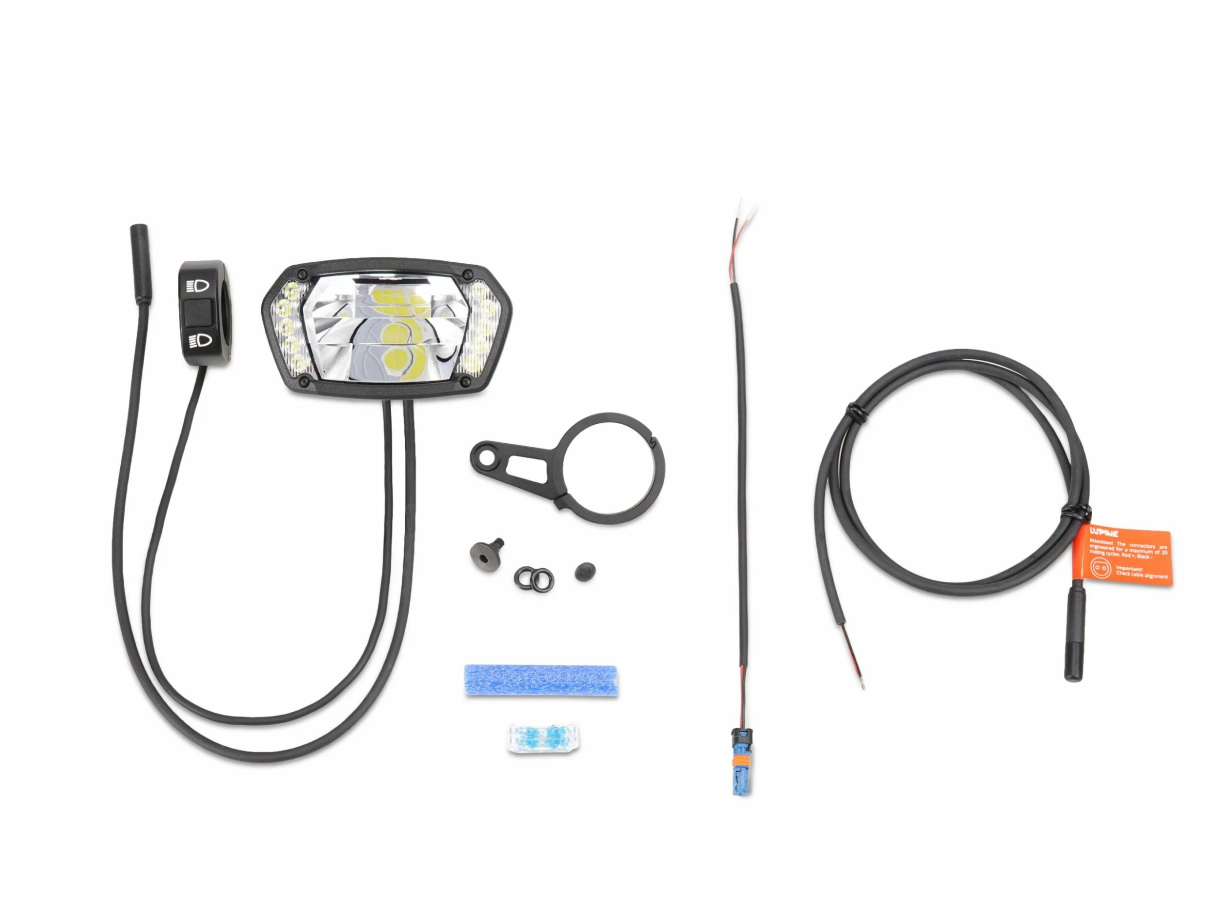 Le phare Lupine SL X 2023 pour vélo électrique brille également par sa facilité d’utilisation grâce à la télécommande fournie. Cette dernière sur la poignée du guidon à l’aide d’un collier de serrage. Cette position permet de passer rapidement et confortablement d’un niveau d’éclairage à l’autre. La télécommande vous indique par une lumière verte ou bleue si vous roulez avec les feux de croisement ou les feux de route.