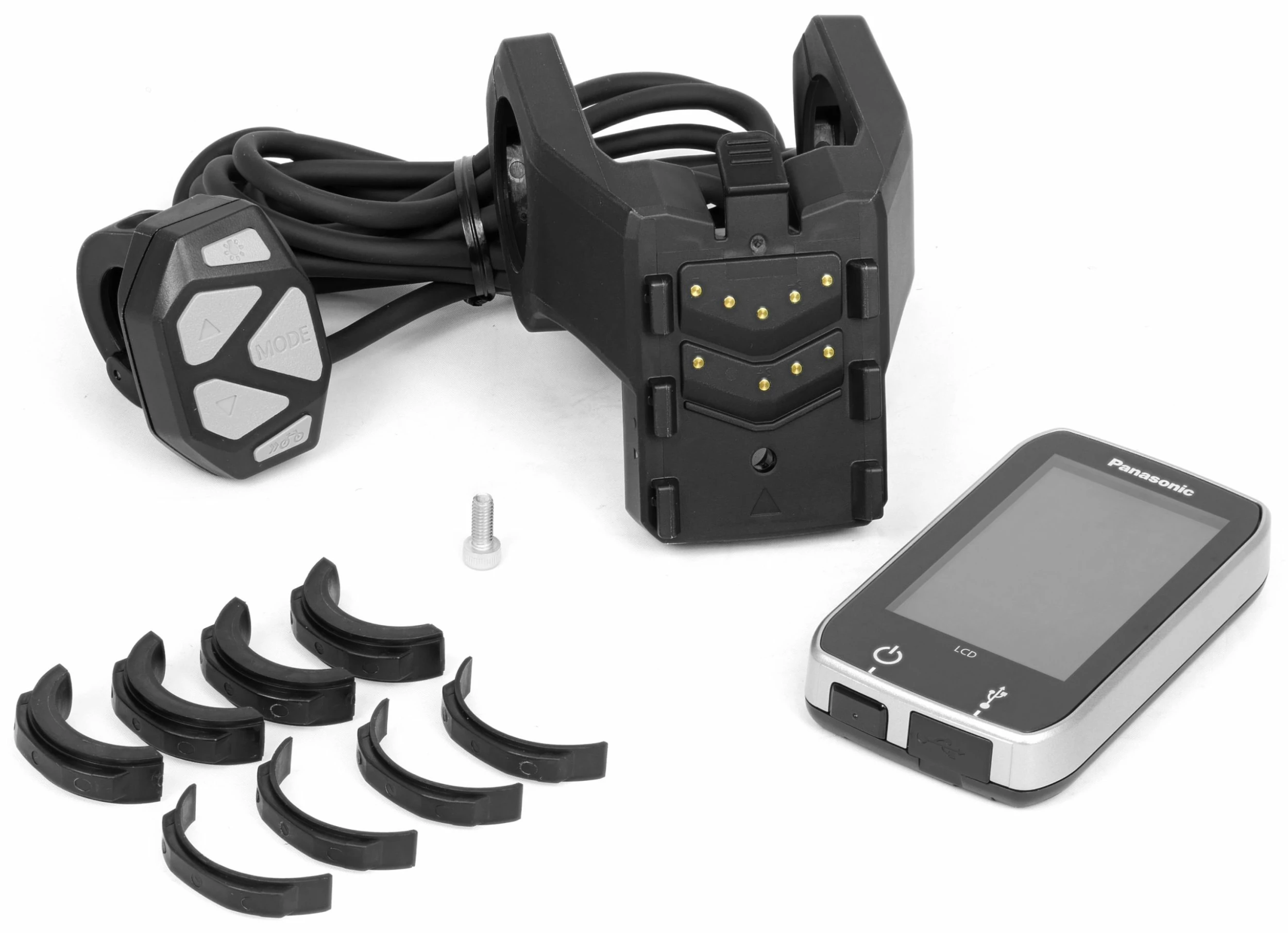 Ecran LCD Panasonic Next Generation – Kit d’installation. Pour vélos électriques équipés d’un moteur Panasonic Next Generation à partir de 2014. Grâce à cet écran LCD, vous aurez toujours vos données de conduites sous les yeux : distance parcourue, vitesse, état de la batterie ou l’autonomie restante. Le kit comprend également un support central pour guidon et une commande déportée. Elle vous permet de contrôler facilement votre vélo électrique Panasonic Next Generation du bout du pouce.