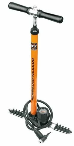La pompe SKS Rennkompressor est une pompe iconique, utilisée depuis plus de 50 ans dans le milieu du cyclisme international. Elle offre une pression jusqu’à 16 bar / 230 PSI et est disponible avec 3 embouts de valve (à choisir en option). Son tube en acier, ses pieds en fonte rabattables et ses poignées en bois en font une pompe stable, fiable et robuste.