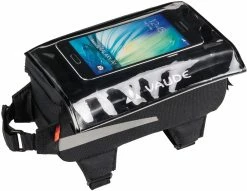 Cette pochette de cadre Vaude Carbo Guide Bag se fixe sur le tube supérieur de votre vélo électrique. Elle vous permettra de garder vos effets personnels (batterie nomade, porte-monnaie, en-cas) à porter de main et de glisser votre smartphone (jusqu’à 5,1″) dans la housse amovible et étanche intégrée.